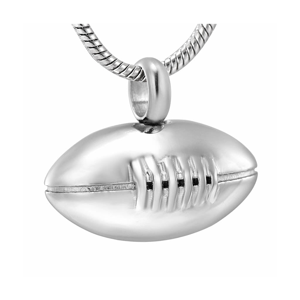 The lacings only add to the realistic look of this football cremation silver-tone pendant in high-quality stainless steel.