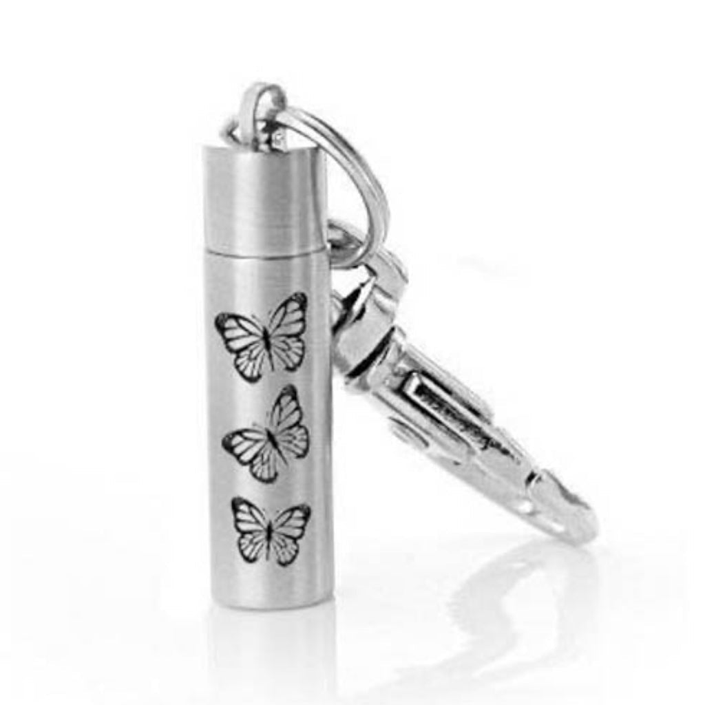 Silver Cylinder with Black Butterflies - Memorial keychain