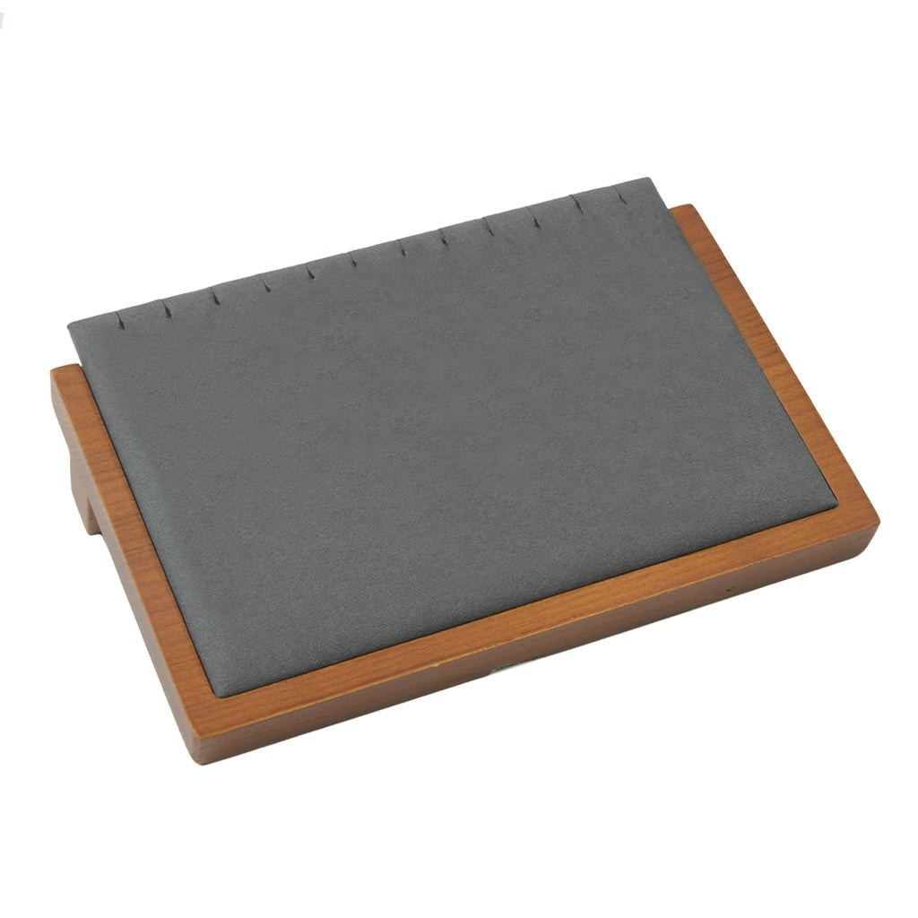 Solid Wood with Gray Microfiber Horizontal Jewelry Necklace Display